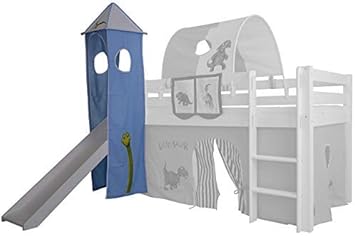 Donjon Tour Pour Lit Sureleve Superpose Mi Hauteur Mezzanine Avec Toboggan Tissu Coton Bleu Blanc Dinosaures Amazon Fr Cuisine Maison