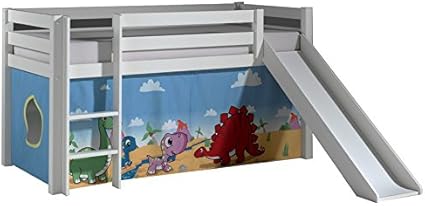 Lits Chambre Literie Lit Mi Haut Avec Toboggan Pluton En Pin Naturel Avec Tente De Lit Dinosaure Inside75