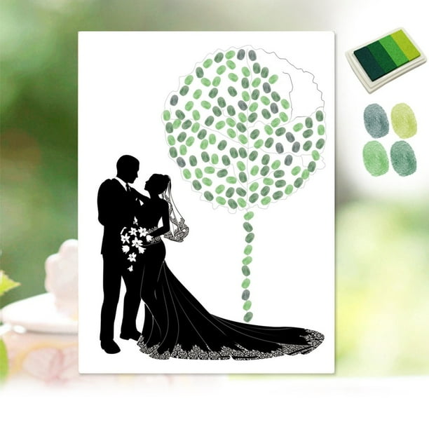 Bride Groom Pattern Canvas Fingerprint Guest Book Unique Design Wedding Finger Painting Diy Party Decoration With Inkpad Walmart Ca